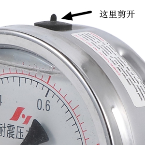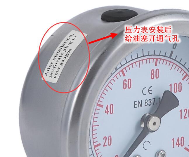很多耐震型壓力表的外殼上都會有一個標貼(有時候有一把剪刀),大體意思就是安裝后要把油塞剪開或者戳一個孔。油塞本來就是為了防止耐震壓力表內的阻尼油漏出來,為什么要開一個孔呢?